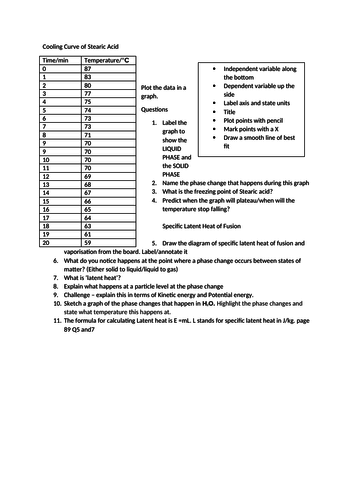 We had to heat ice in a hot water bath over a bunsen burner and record the time every 30 seconds until it boiled and then in a freezer the same way it was just a hypothetical experiment.